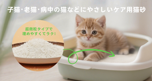 子猫・シニア猫・療養中や体力が低下している猫のために設計された、やさしいケアタイプの猫砂です。